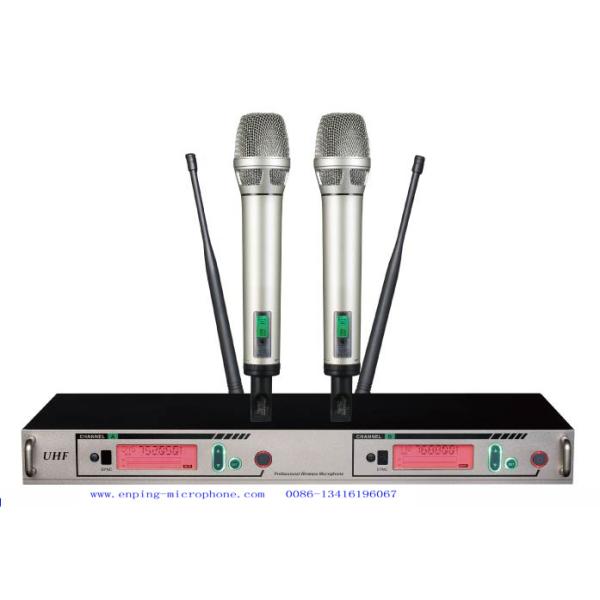 good quality low price UHF band /competitive low price /double channel 2 handheld headset MIC Lavalier Mic Clip Mic / selectable frequency / rugged rack size receiver/